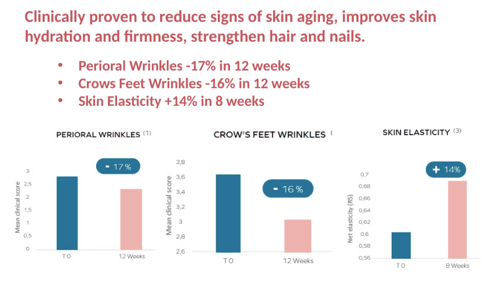 Sustainable marine collagen | Vitamin C | Vitamin E | Vitamin A | Biotin